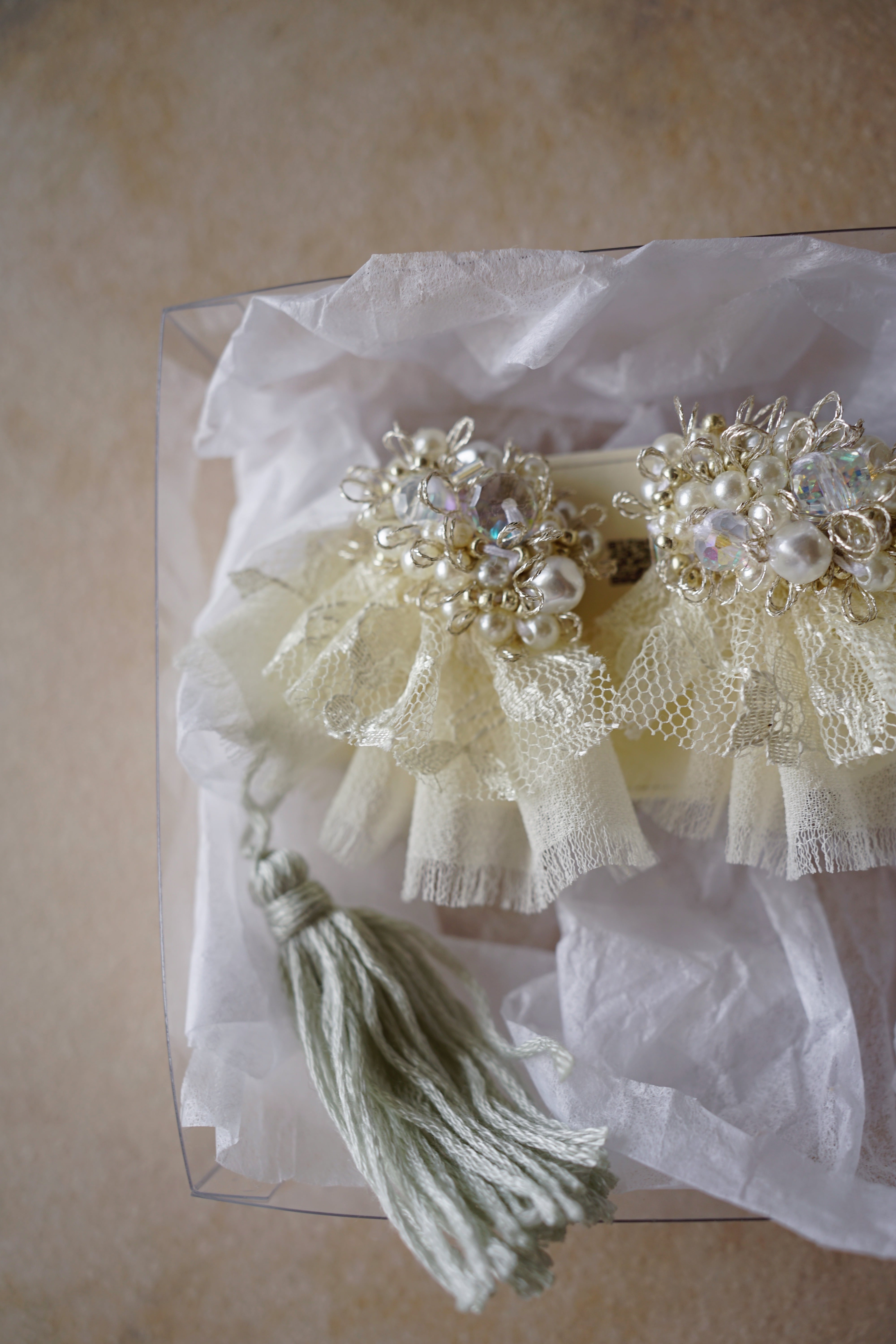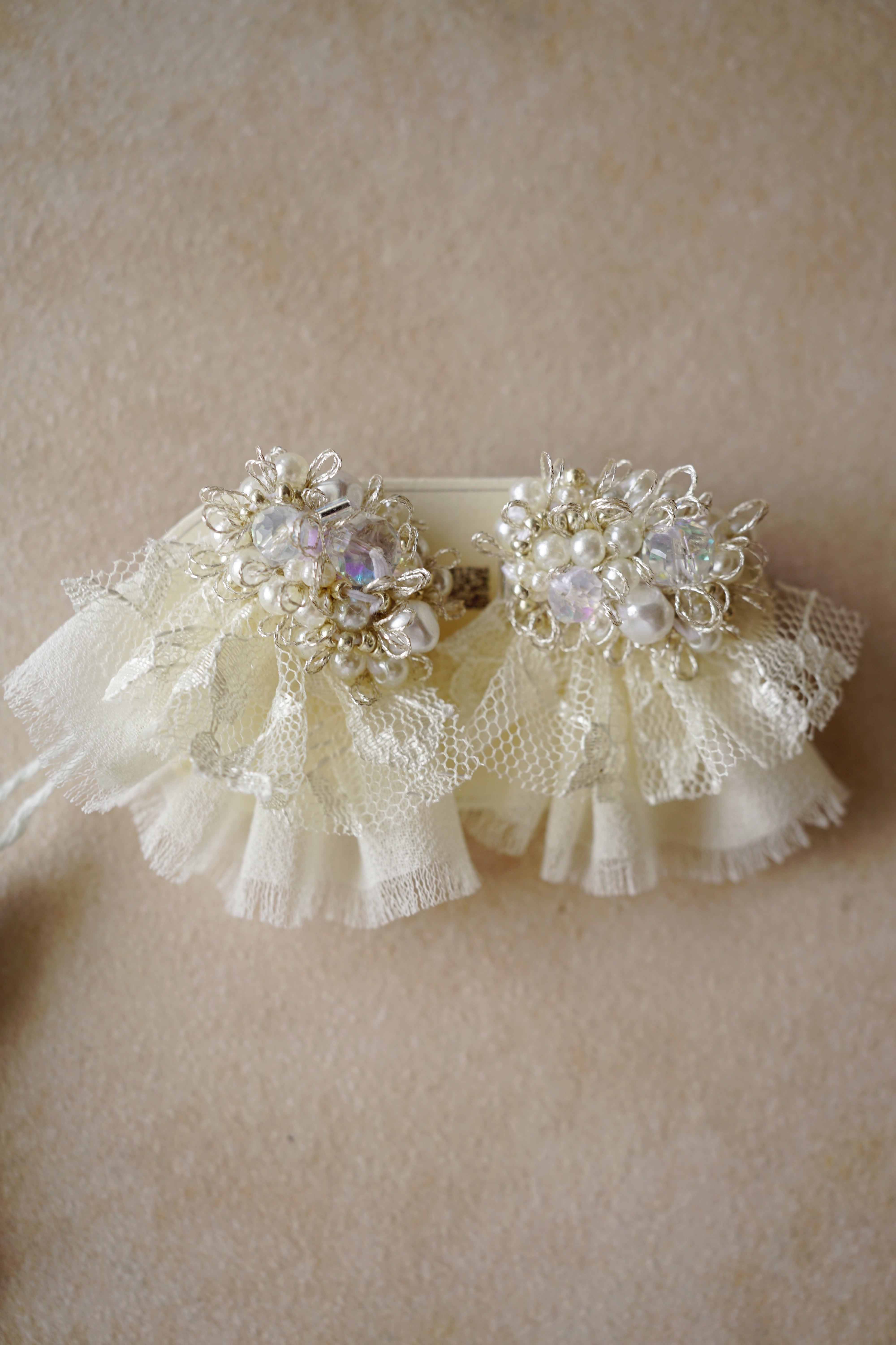 ビーズやレースを重ね、
