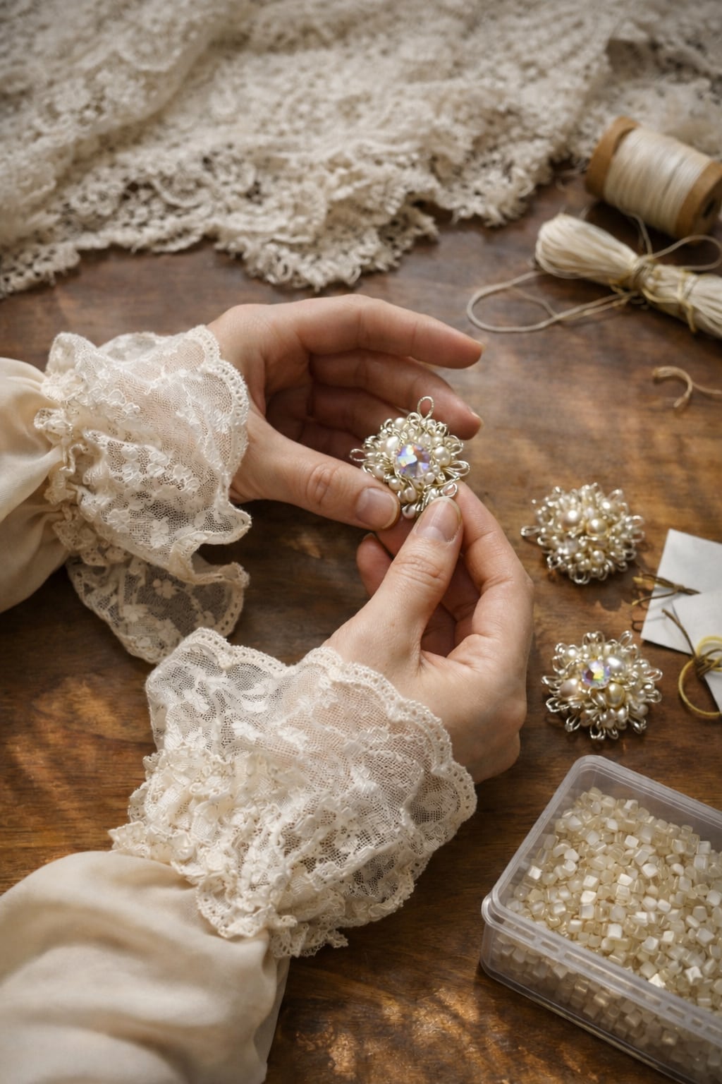 お選びいただいた金具をひとつひとつ丁寧に接着し、